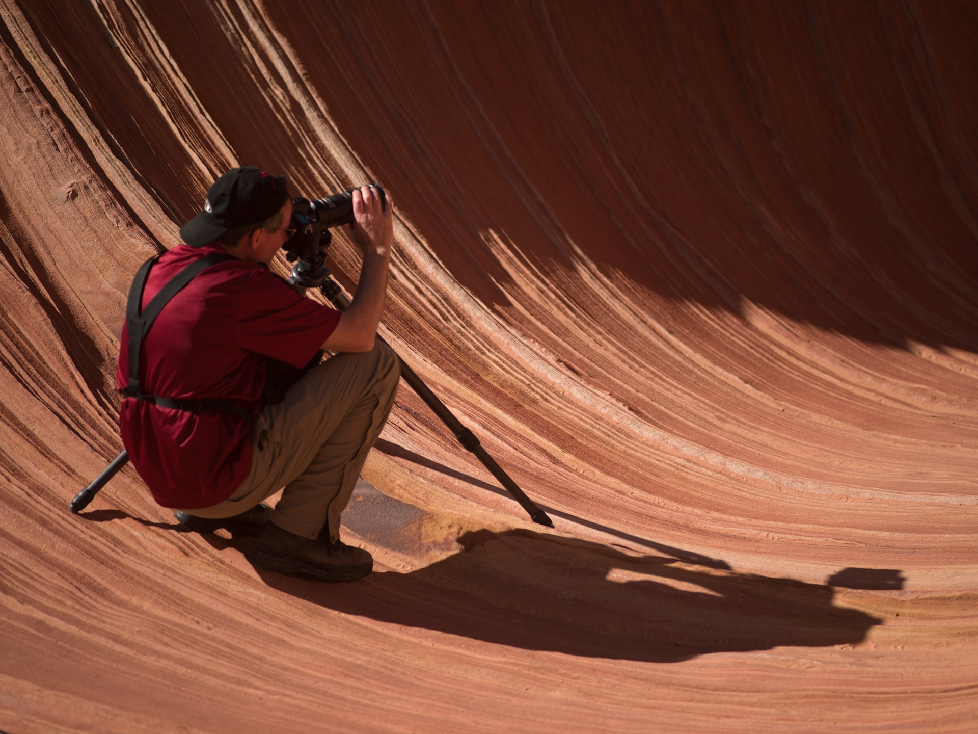 This photograph was taken in the busy Upper Antelope Canyon and Eric Peake helped by holding back the crowds! Gayle was terrific and stayed very still throughout the long exposure.